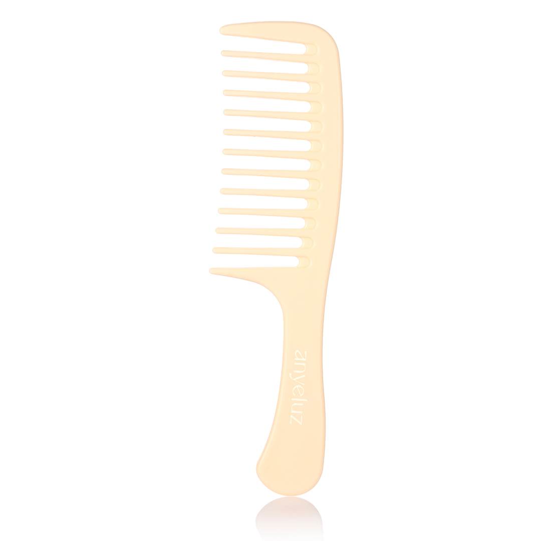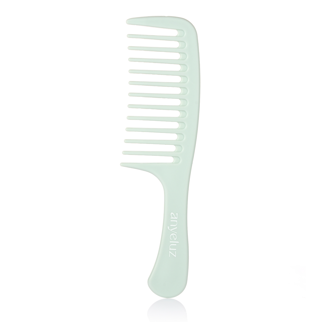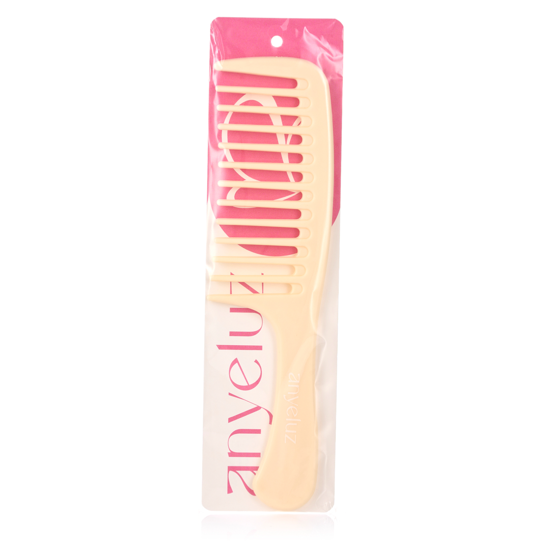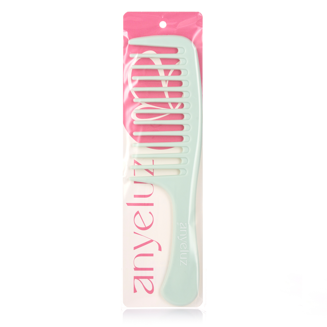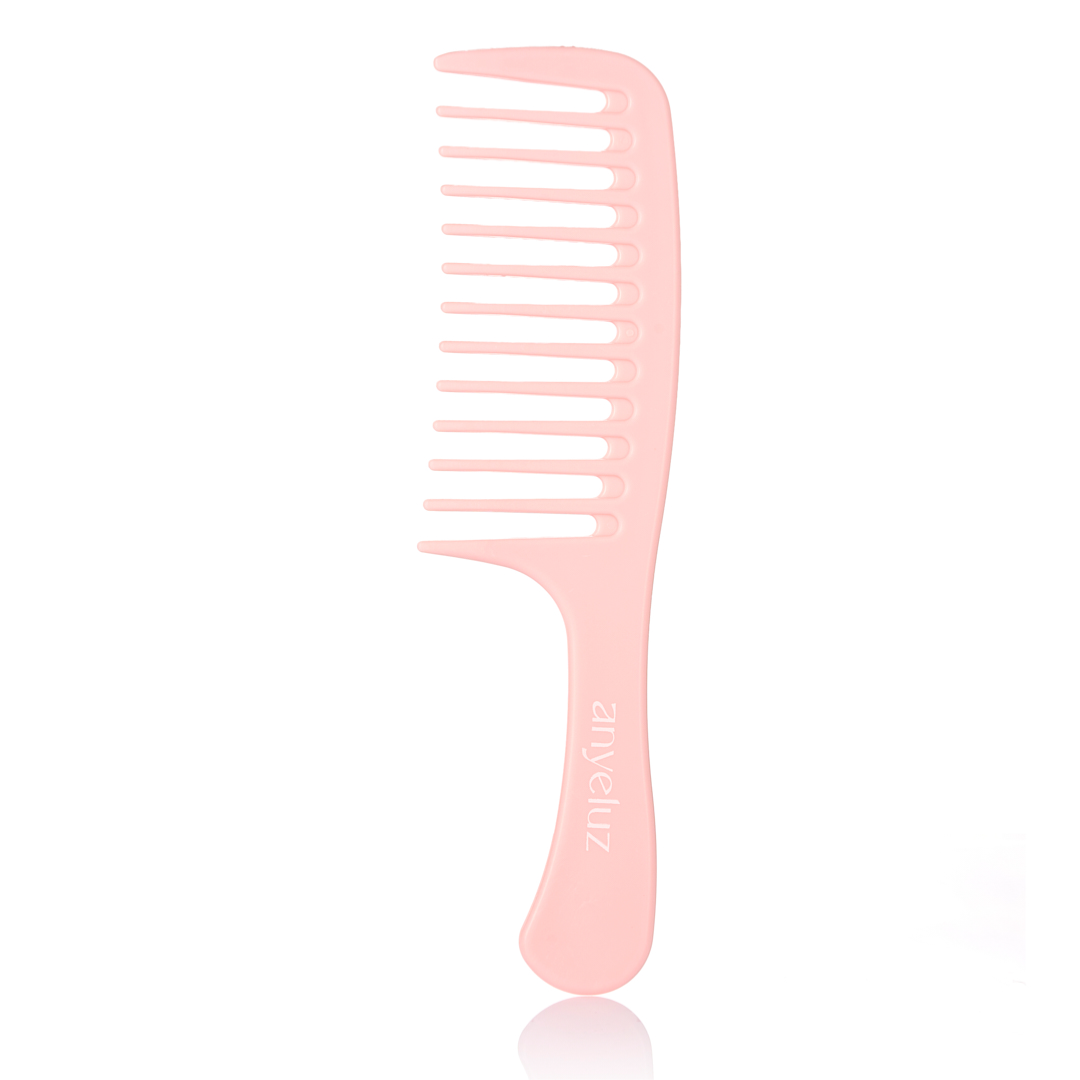 Peinilla desenredante Anyeluz, con puntas separadas que se deslizan suavemente entre el cabello, evitando daños y ayudando a mantenerlo saludable y sin frizz. Es perfecta para proteger la fibra capilar y facilitar estilizados rápidos. Disponible en 4 tonos pastel: azul, amarillo, rosa y verde menta.