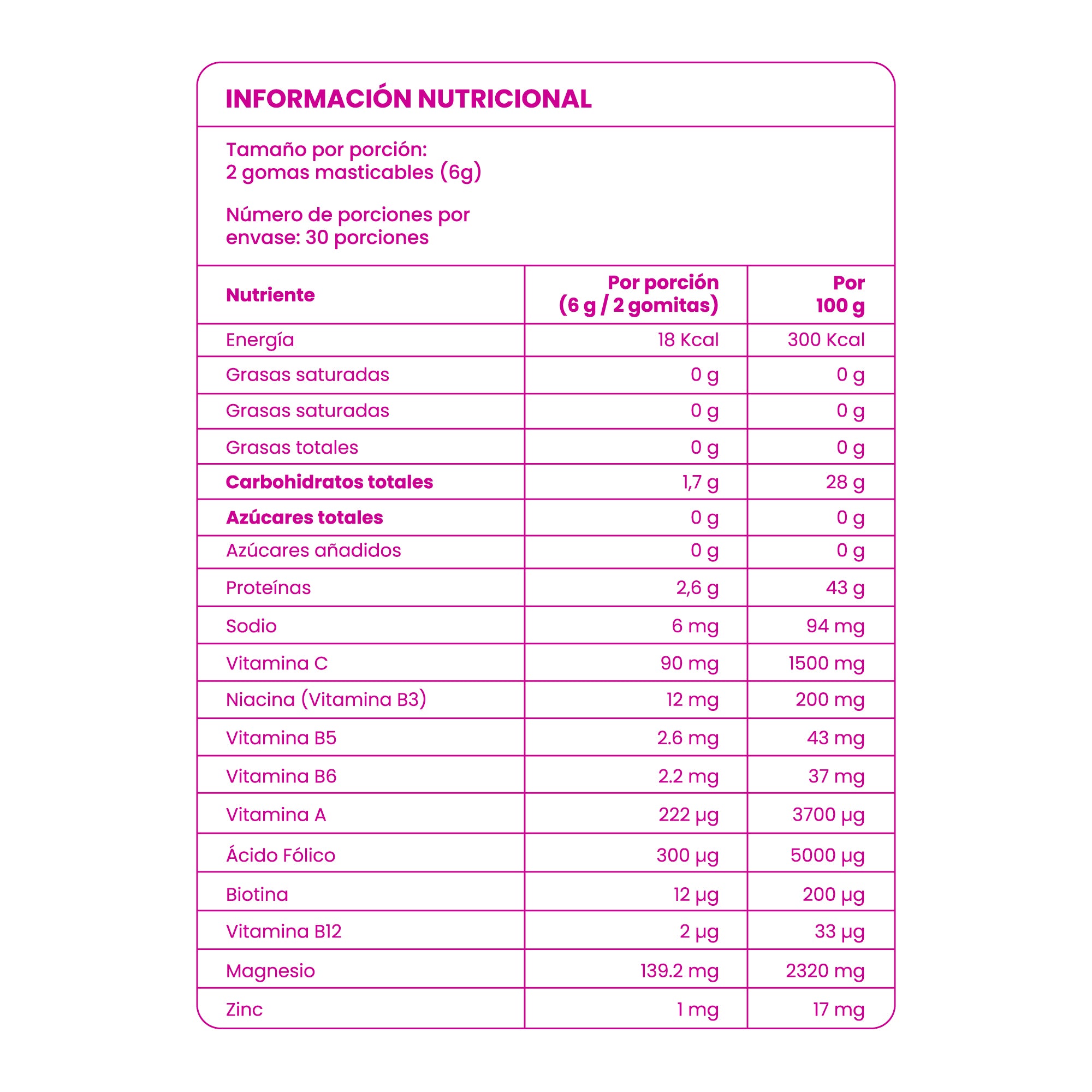 Las Gomitas Masticables Fortificadas con Vitaminas y Zinc son un aliado diario en formato gomita diseñado para aportar apoyo diario a tu sistema inmunológico, energía, piel radiante, uñas fuertes y bienestar general. Cada gomita combina vitaminas esenciales (A, B3, B5, B6, C, B12, biotina) con zinc y magnesio para ofrecer una nutrición que ayuda a reforzar tus defensas, mantener la salud celular y complementar fácilmente tu alimentación diaria.