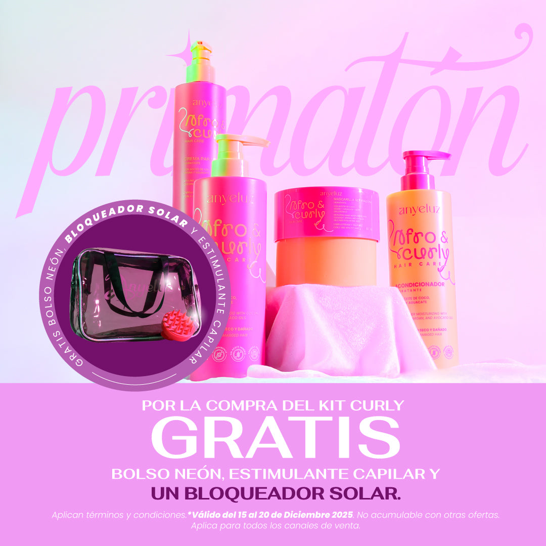 KIT AFRO & CURLY ¡GRATIS BOLSO NEÓN, BLOQUEADOR Y ESTIMULANTE CAPILAR!
