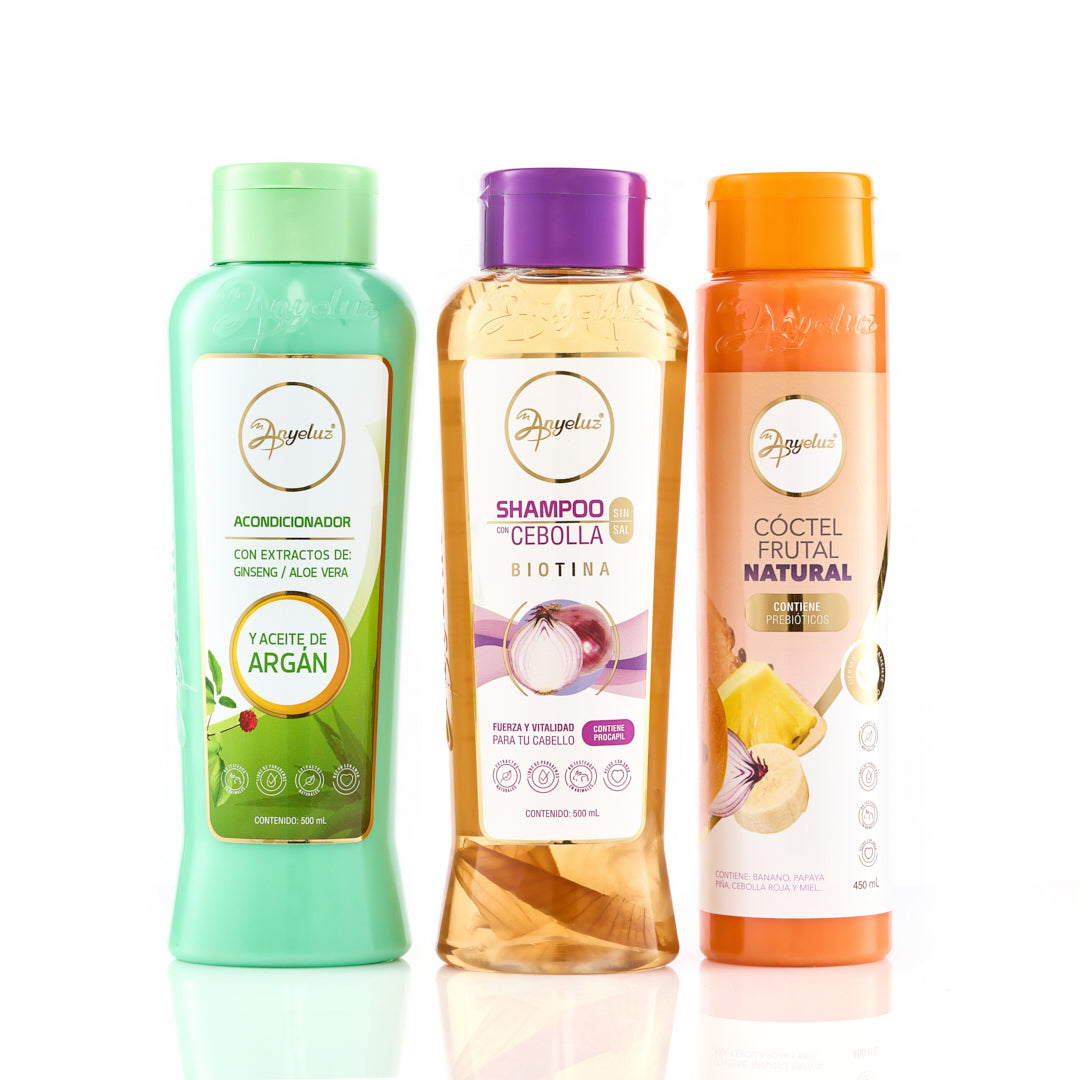 - El SHAMPOO CON CEBOLLA: (Sin sales, ni parabenos) de nuestra marca Anyeluz está compuesto principalmente de cebolla roja, la cual contiene quercetina (que son pigmentos naturales con poderosos antioxidantes) que mejora la resistencia del cabello, evitando su ruptura y descamación, su aporte de azufre estimula el flujo sanguíneo y actúa como antiinflamatorio. Asimismo el shampoo es sin sal y libre de parabenos, limpia la grasa y reduce las irritaciones del cuero cabelludo activando el riego sanguíneo, haciendo que el folículo piloso se abra iniciando un crecimiento sano y fuerte, también aporta brillo y es apto para todo tipo de cabello.