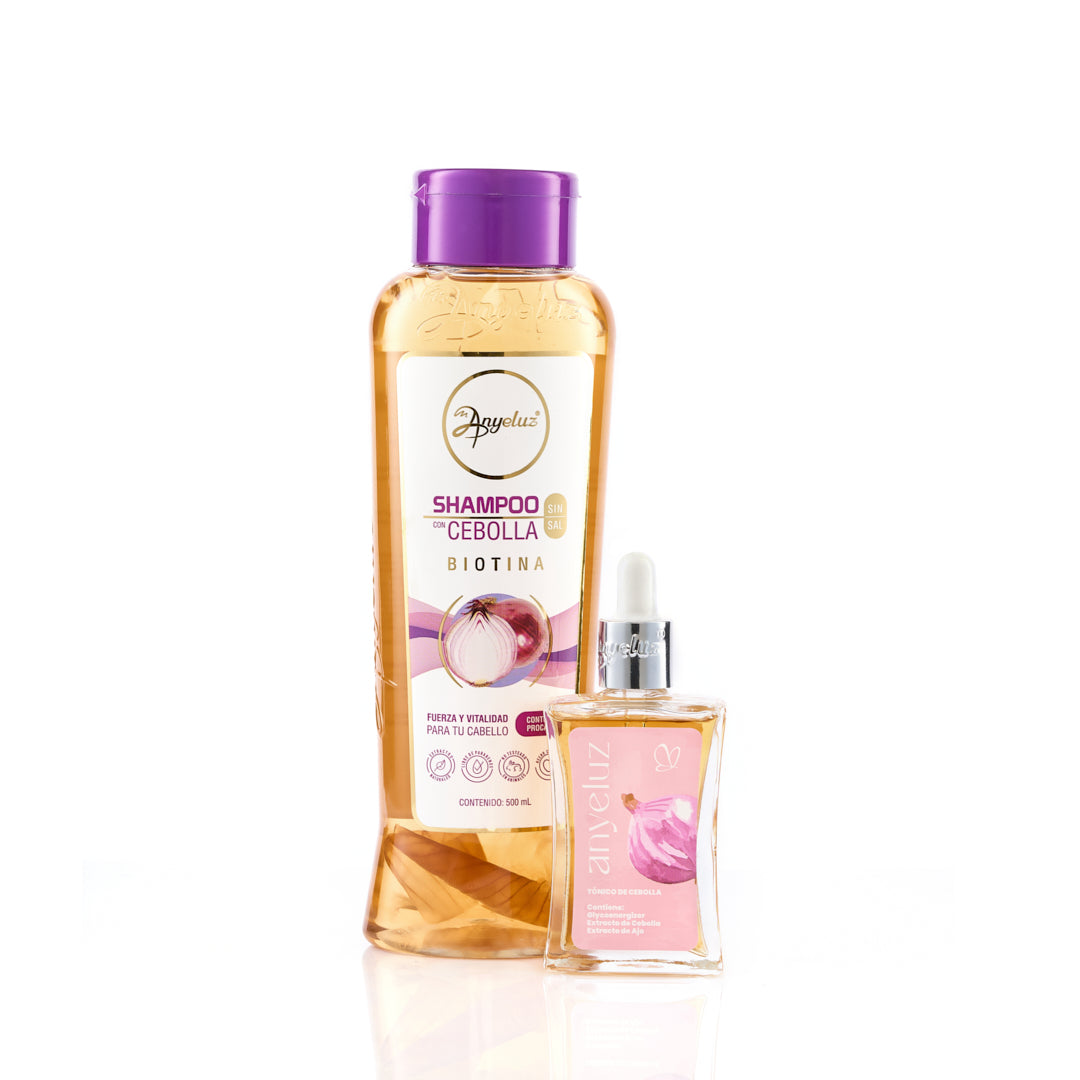 El SHAMPOO CON CEBOLLA (Sin sales, ni parabenos) de nuestra marca Anyeluz está compuesto principalmente de cebolla roja, la cual contiene quercetina (que son pigmentos naturales con poderosos antioxidantes) que mejora la resistencia del cabello, evitando su ruptura y descamación, su aporte de azufre estimula el flujo sanguíneo y actúa como antiinflamatorio. Asimismo el shampoo es sin sal y libre de parabenos, limpia la grasa y reduce las irritaciones del cuero cabelludo activando el riego sanguíneo, haciendo que el folículo piloso se abra iniciando un crecimiento sano y fuerte, también aporta brillo y es apto para todo tipo de cabello (incluyendo niños), lo puedes usar cada vez que desees lavarte el cabello.