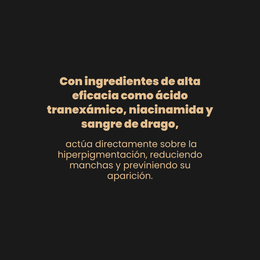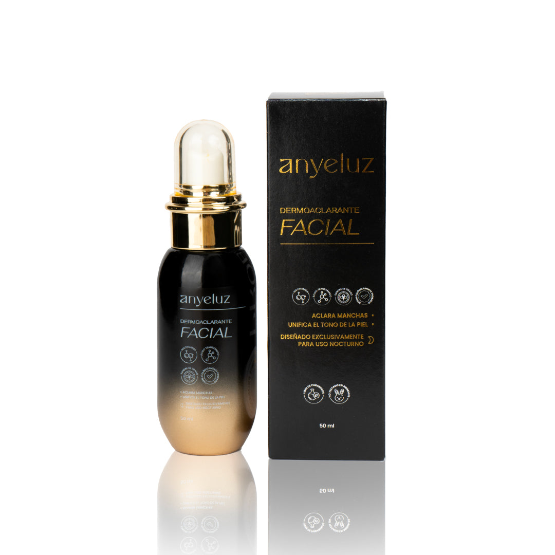 El Sérum Dermoaclarante Facial Anyeluz® tiene una fórmula avanzada que está diseñada para aclarar manchas, unificar el tono y mejorar la textura de tu piel. Con ingredientes de alta eficacia como ácido tranexámico, niacinamida y sangre de drago, actúa directamente sobre la hiperpigmentación, reduciendo manchas y previniendo su aparición.