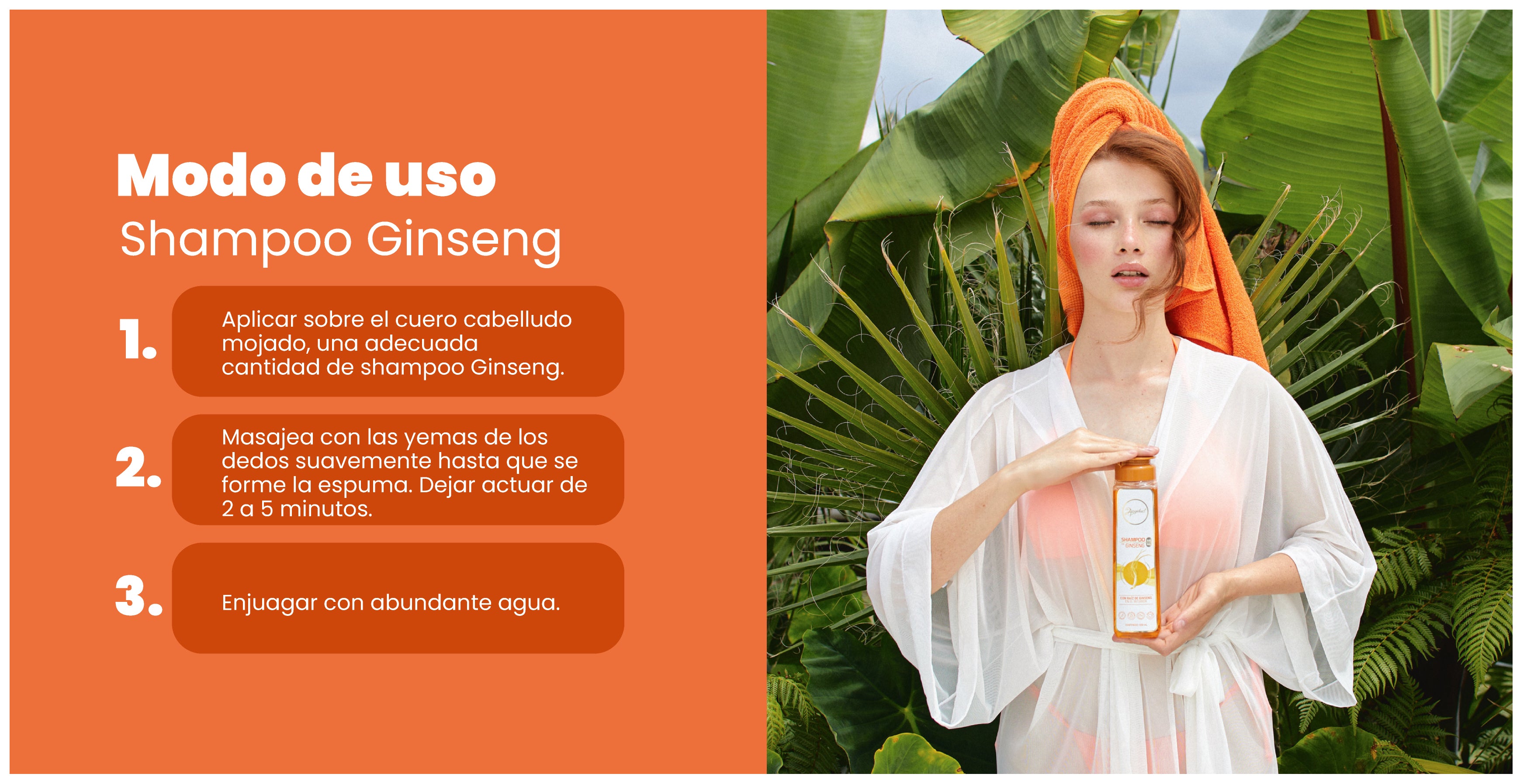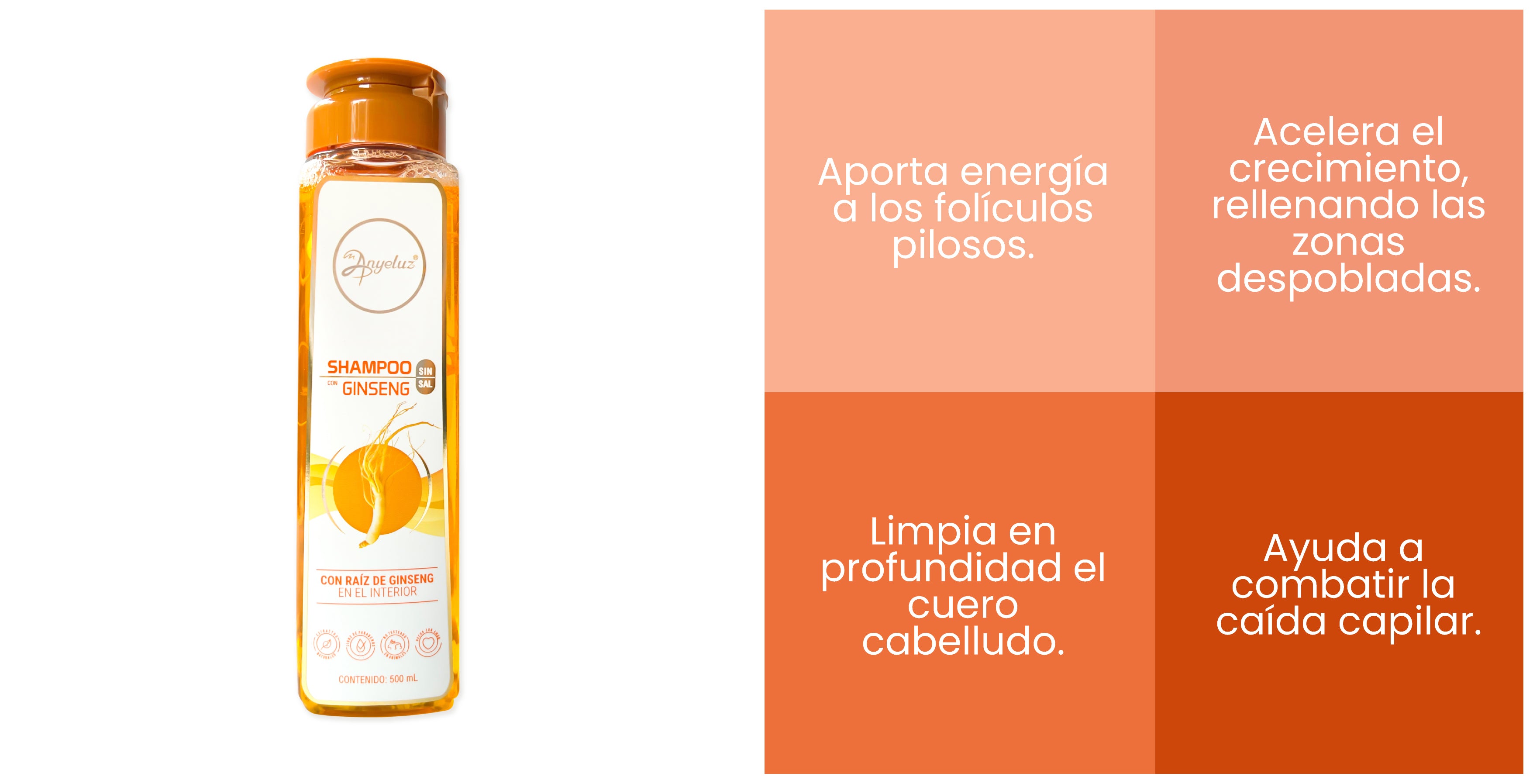 - Aplicar sobre el cabello mojado una adecuada cantidad de Shampoo Ginseng Anyeluz®.