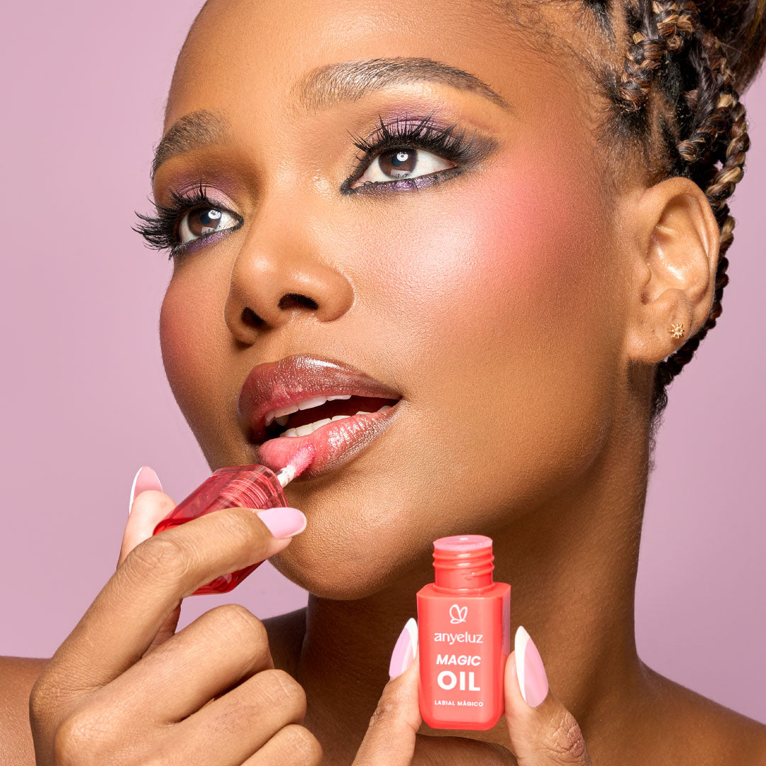 Magic Oil cambia de color en función del pH de tus labios, ofreciendo un tono personalizado y natural que varía según la persona.