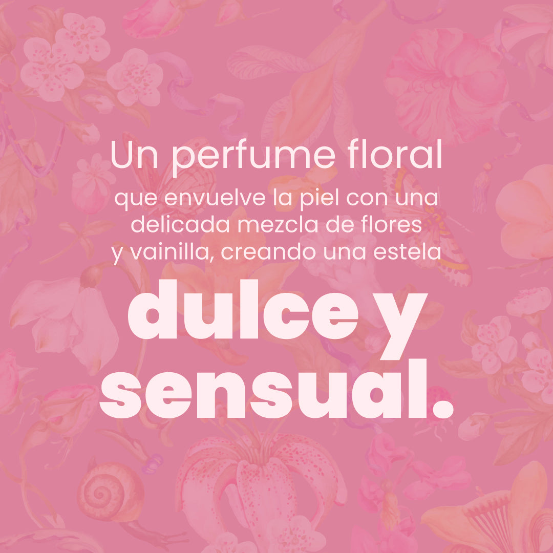 Un perfume floral que envuelve la piel con una delicada mezcla de flores y vainilla, creando una estela dulce y sensual que perdura todo el día. Su sofisticada combinación de rosa turca y peonía ofrece un aroma romántico y elegante, ideal para mujeres que buscan destacar su feminidad y clase.