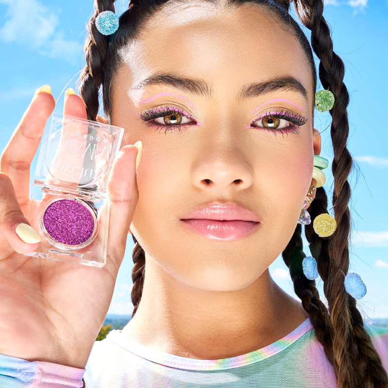 Para máximo brillo, humedece la brocha con spray fijador y presiona la sombra.