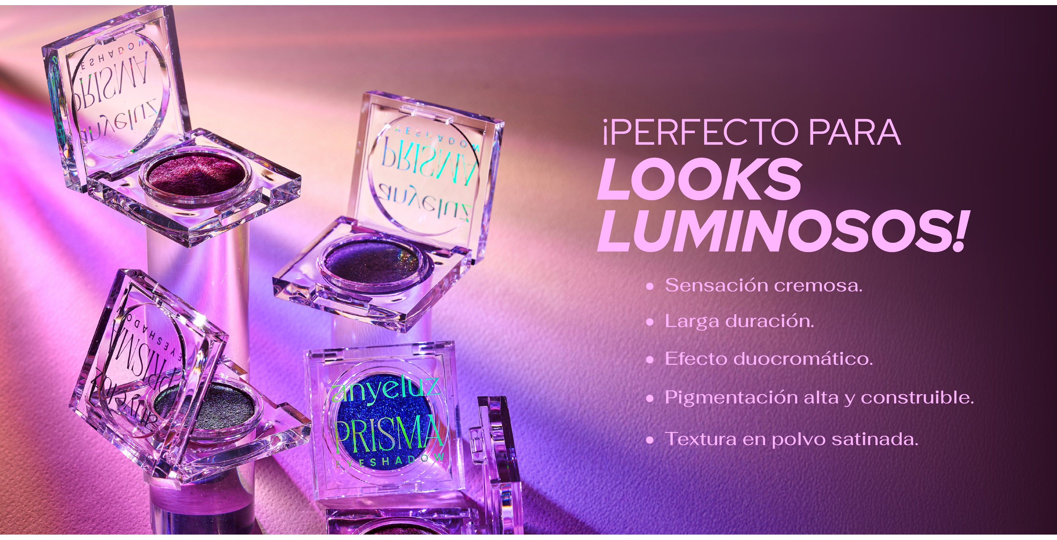Prisma es una sombra individual satinada de alta pigmentación que ofrece un acabado luminoso y sedoso en 6 tonos diferentes, los cuales están diseñados para complementar todas las tonalidades de piel. Además, su textura cremosa en polvo se difumina con facilidad y se adhiere sin parches.