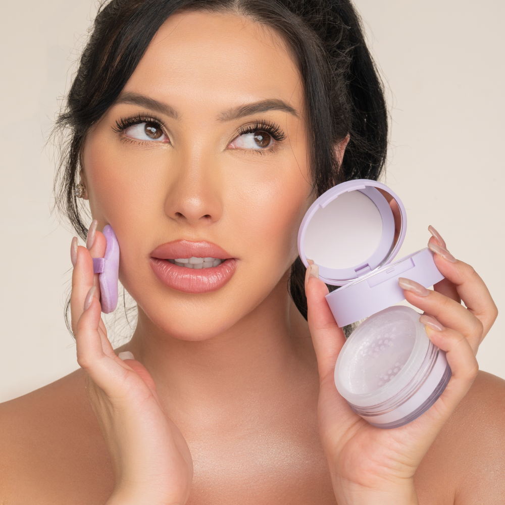 Polvo lila: neutraliza tonos amarillos, aporta luminosidad y genera un efecto más claro y fresco. Es ideal para pieles con subtono amarillo u opacas.
