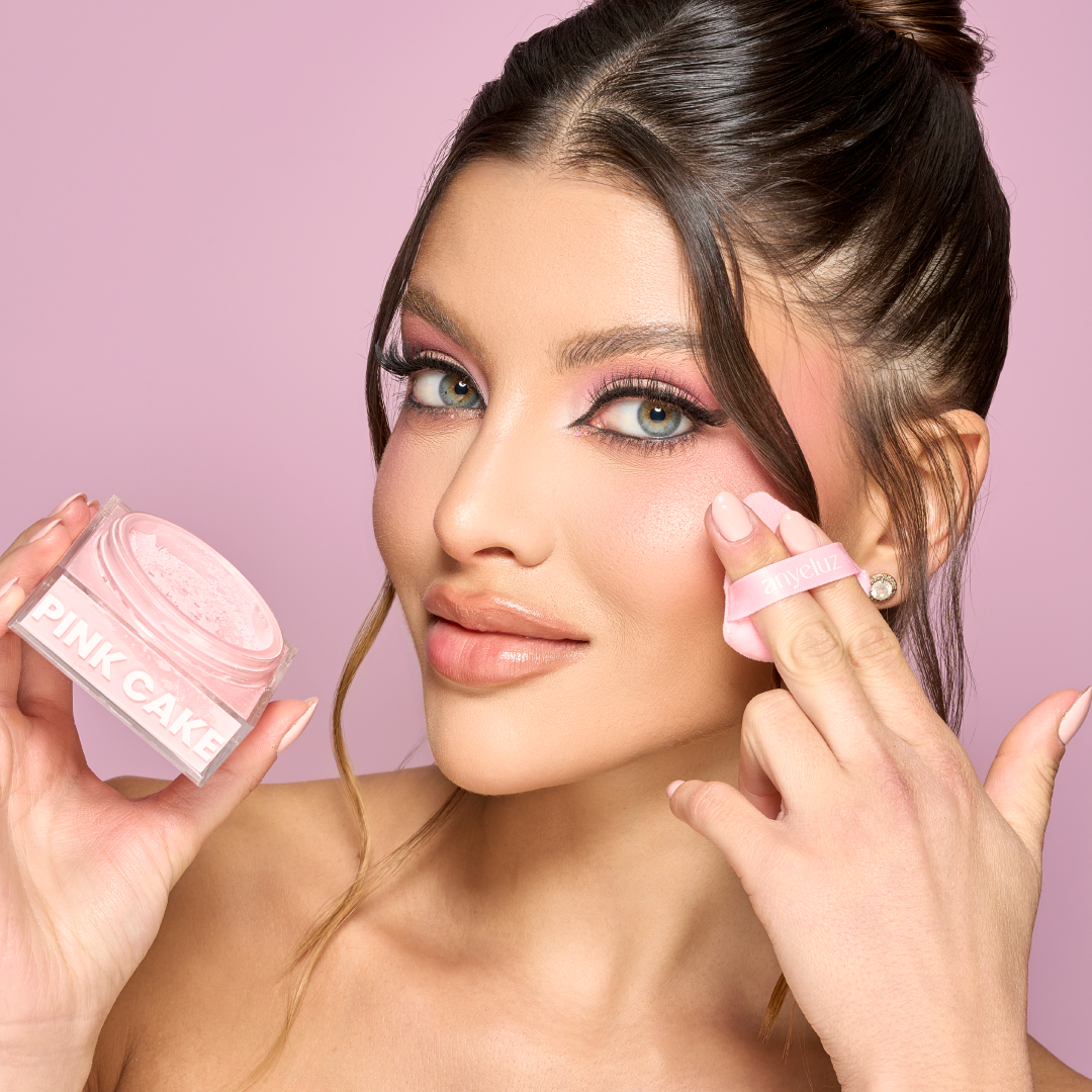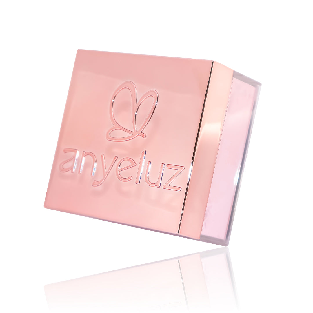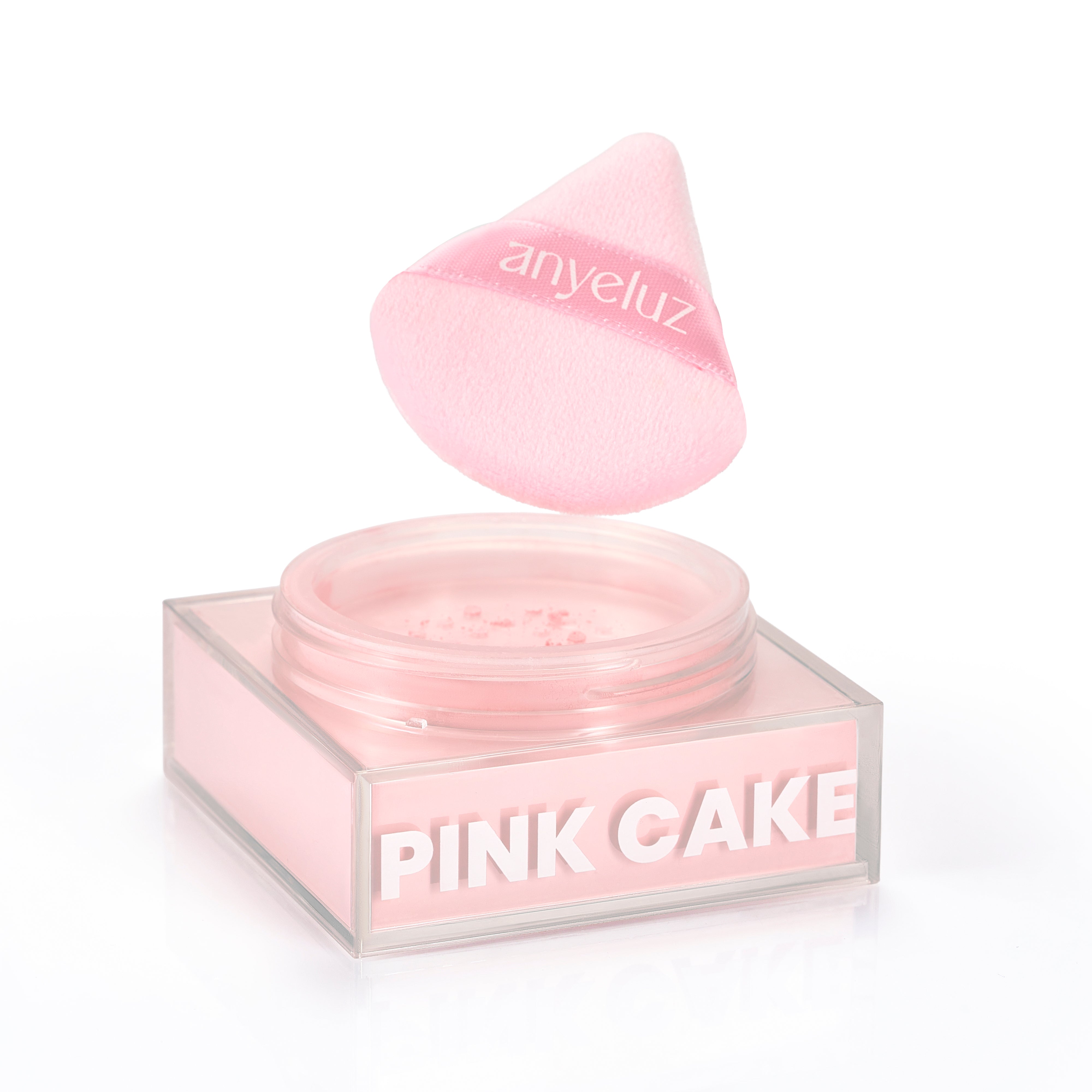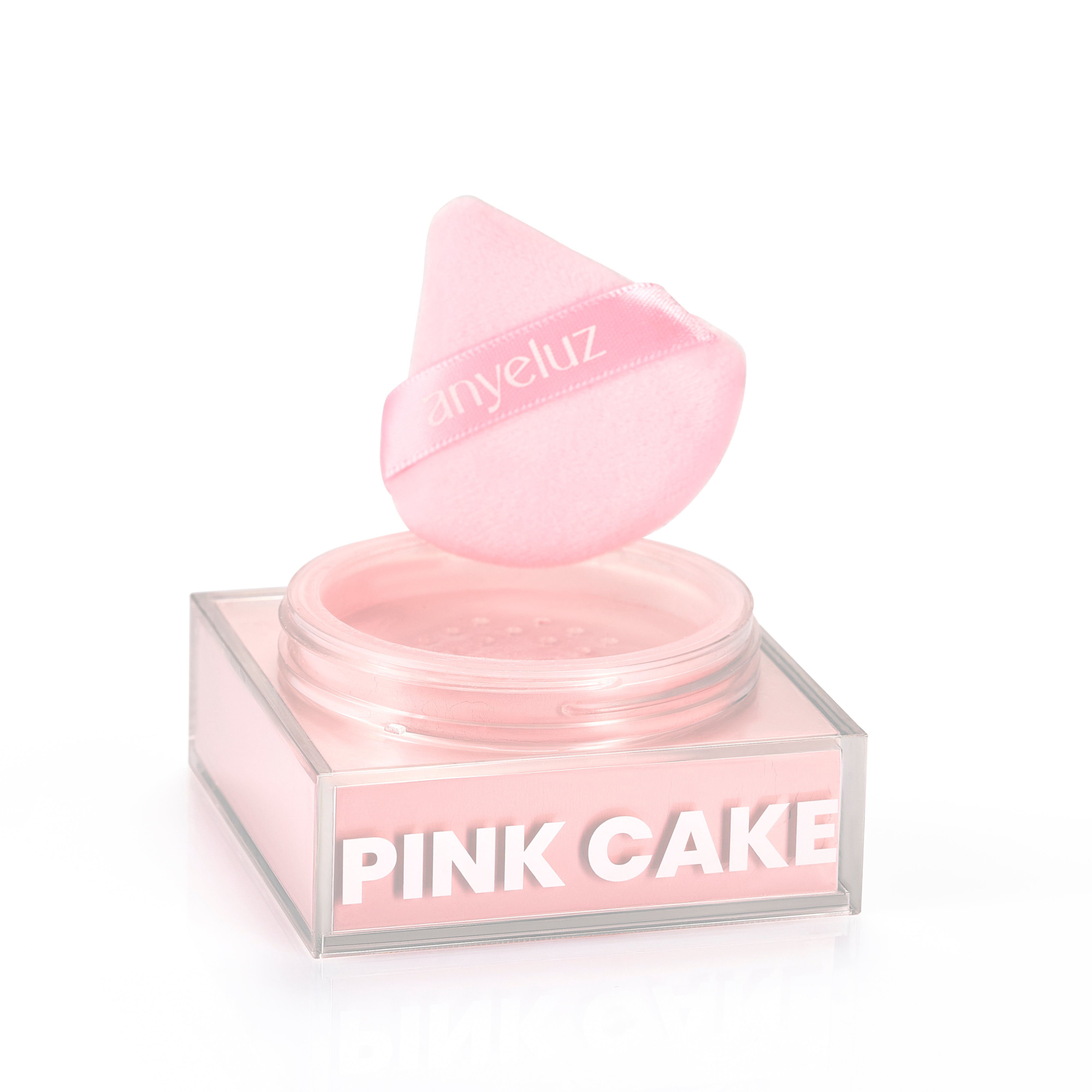Polvo suelto rosado Pink Cake, diseñado para sellar el maquillaje y aportar un toque sutil de color rosado en el área de la ojera, que realza la luminosidad de la piel.