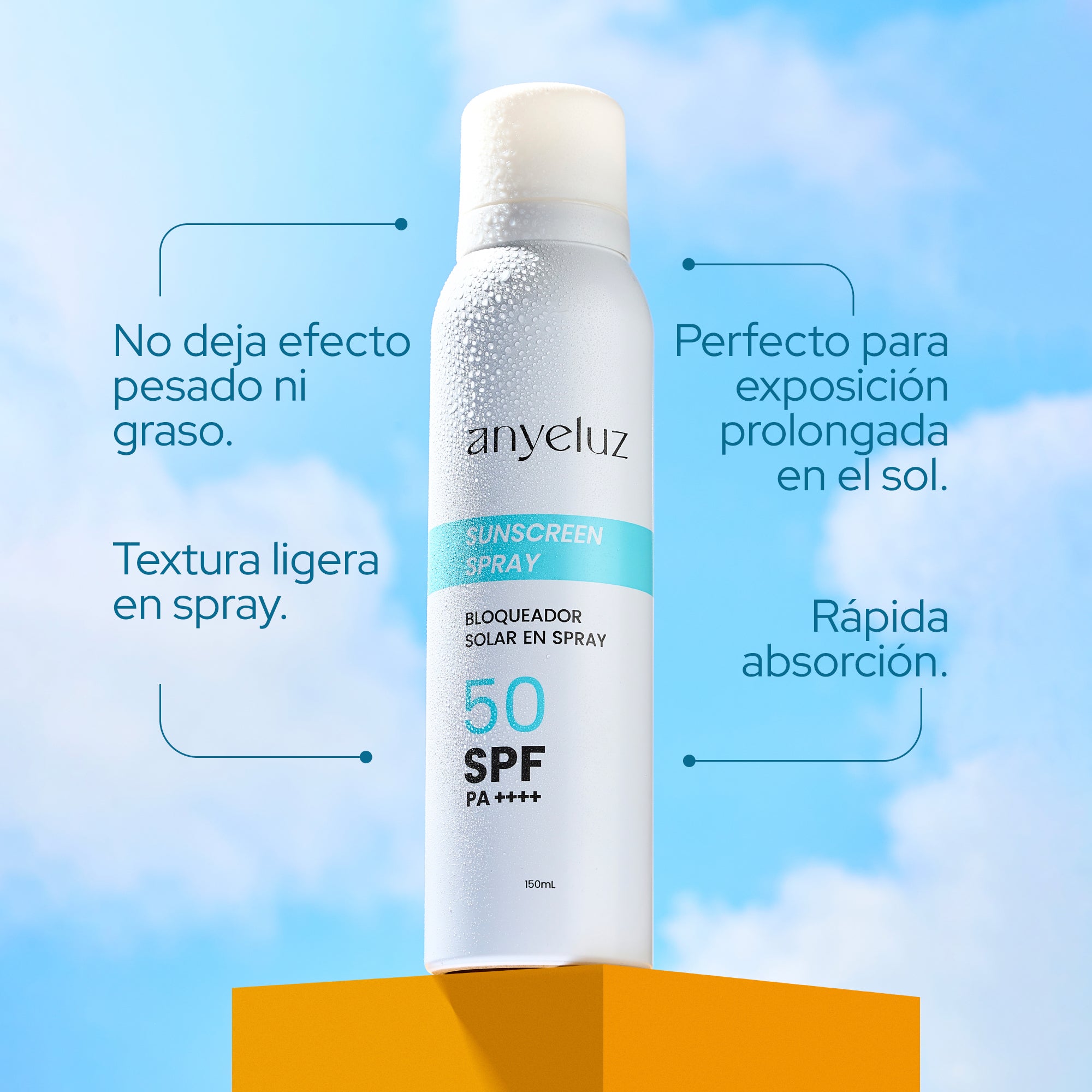 El Sunscreen Spray SPF 50 PA++++ es un protector solar en spray de textura ligera, diseñado para una aplicación rápida, pareja y sin sensación grasosa. Ofrece alta protección contra rayos UVA y UVB, ayudando a prevenir manchas, envejecimiento prematuro y quemaduras solares.